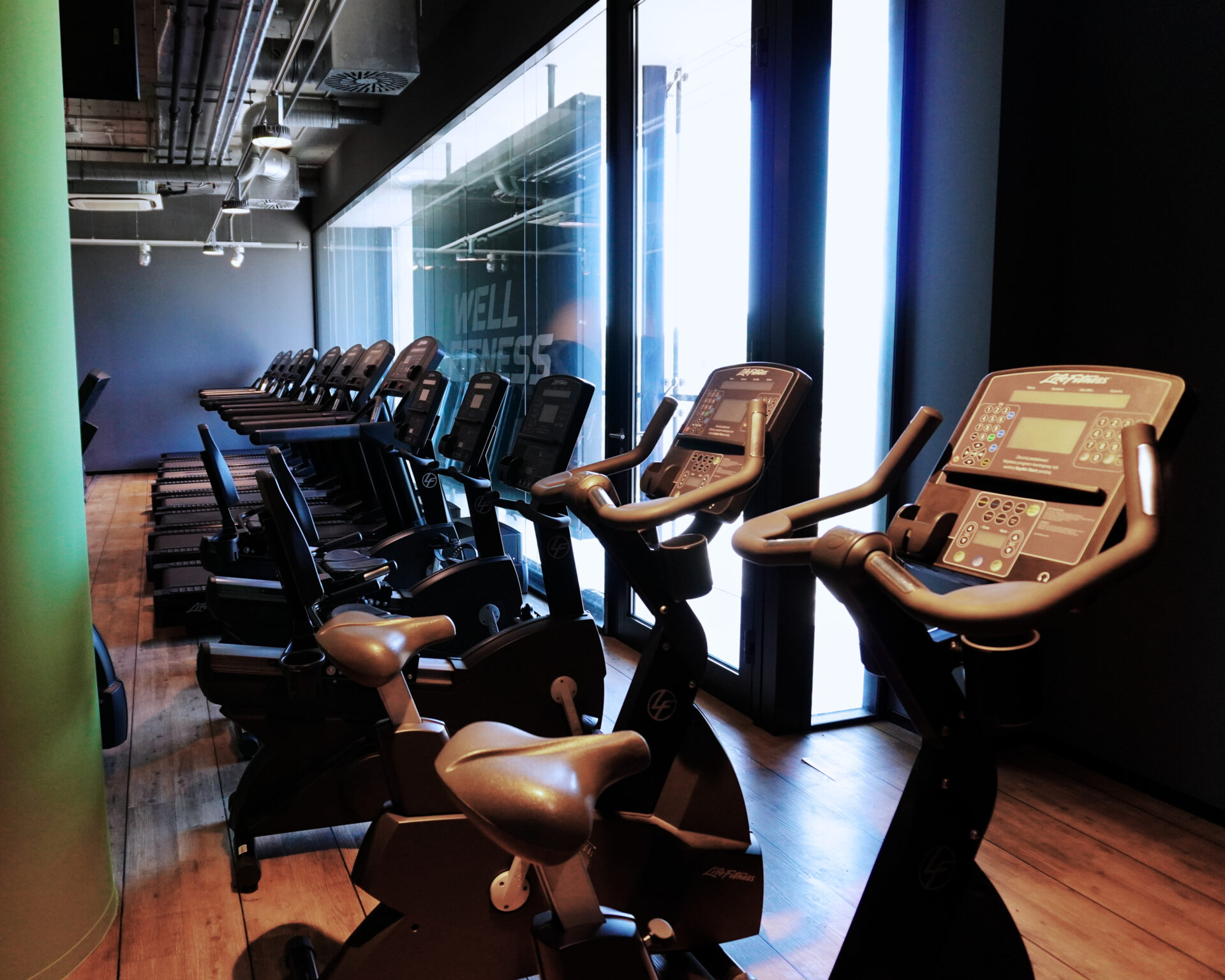 - Нижній рівень - кардіо-зона, зона силових тренажерів та сучасний реформатор пілатесу.